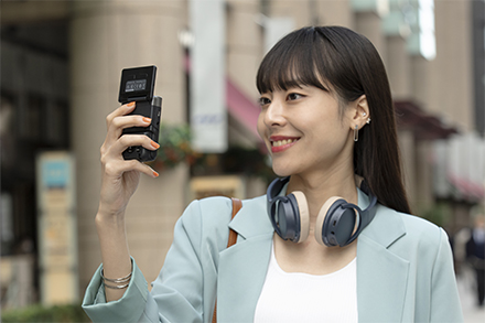 わずか211g※の超軽量ボディ。操作ボタンを中央に配置した、どちらの手でも操作しやすいデザインです。スマホのような撮影スタイルで、街中でも目立ちません。縦スタイルだから撮影時に構えても片手でしっかり持てるので長時間安定した動画撮影を楽しめます。