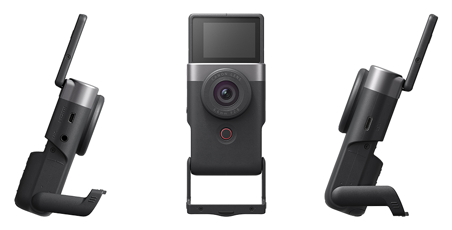 PowerShot V10は、スタンドが内蔵されています。スタンドは-30〜+30°(ボディが垂直な状態を0°とした場合)の範囲で調整可能※1です。