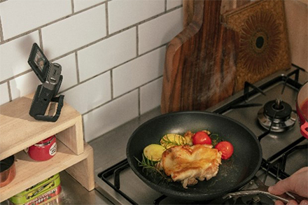 三脚を持ち歩かなくても、本体1つで撮りたい角度からの置き撮りが可能。スタンドを出して、グリップ代わりにもなります。