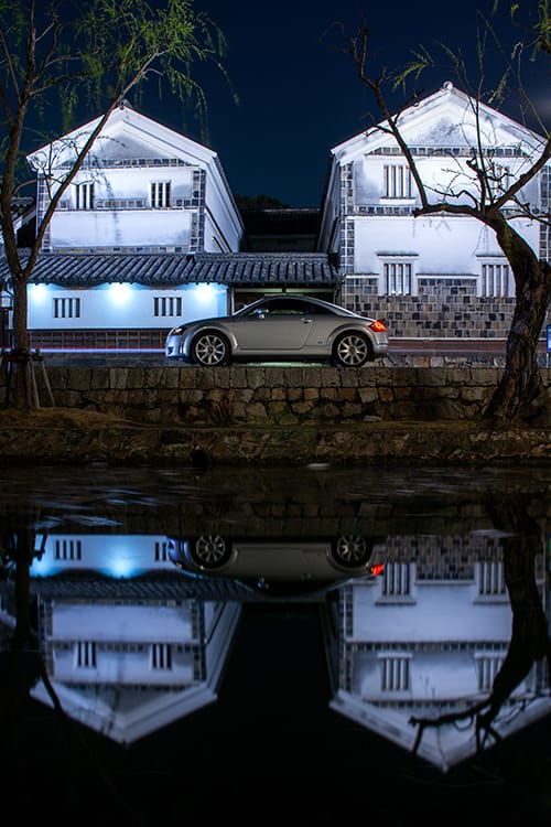 川面に映るアウディTTを撮るため、
