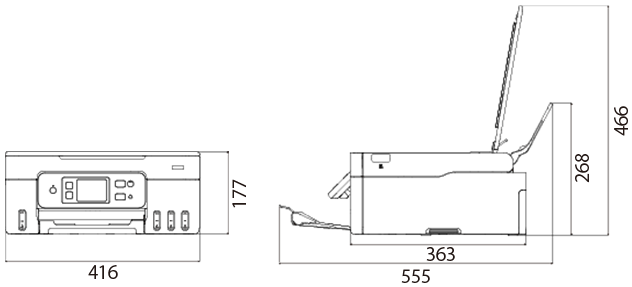使用可能用紙サイズ | A4、A5、A6、B5、レター、リーガル、洋形封筒4号/6号、 長形封筒3号/4号、商用10号封筒、DL封筒、はがき※2、郵便往復はがき※3、名刺※4、L判※4、KGサイズ※4、2L判※4、六切※4、スクエア(127mm・89mm)※4、ユーザー定義サイズ(幅 55mm~216mm、長さ 89mm~1200mm) |