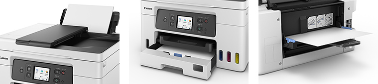 大量に給紙できるので頻繁に用紙を補充する必要がなく、大量印刷時でも時間をロスすることなく印刷を続けられます。また背面給紙で写真用紙や封筒、ラベル紙なども印刷できます。