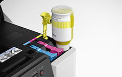 ボトルの差込口の形状を各色ごとに変更。正しい色のタンクにしか差し込めないようにして誤挿入を防ぎます。