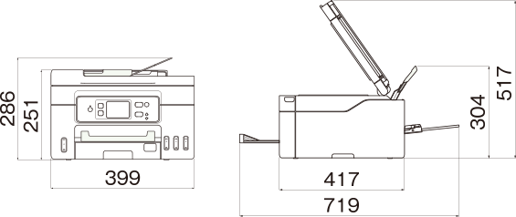 使用可能用紙サイズ | 後トレイ | A4、A5、A6、B5、レター、リーガル、洋形封筒4号/6号、長形封筒3号/4号、商用10号封筒、DL封筒、はがき※2、郵便往復はがき※3、名刺※4、L判※4、KGサイズ※4、2L判※4、六切※4、スクエア(127mm)※4、ユーザー定義サイズ(幅 55mm〜216mm、長さ 91mm〜1200mm) |