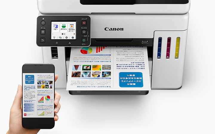 多様なファイル形式に対応する無料アプリ「Canon PRINT」スマートフォンやタブレットからの文書、写真の印刷はもちろん、スキャンした画像をスマホに保存したり、クラウドのデータをプリントすることも可能です。