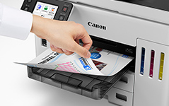 キヤノン独自開発の全色顔料インクにより、にじみが少なく、くっきりとした「プリント」を実現。耐水性や耐マーカー性に優れ、擦れにも強いインクです。図表や白抜き文字、バーコートやQRコードなども美しく印刷するなど、普通紙印刷の品質を高めています。