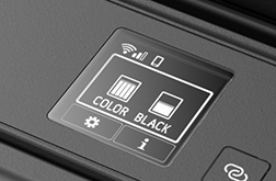サイズは1.44インチ。本体単体で「インク残量」「ネットワーク接続」等ステータスを把握できます。