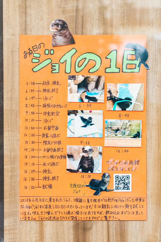 ▲今回の水族館ニュースでは、担当しているアシカのジョイ君の1日を、たくさんの写真とともに紹介。