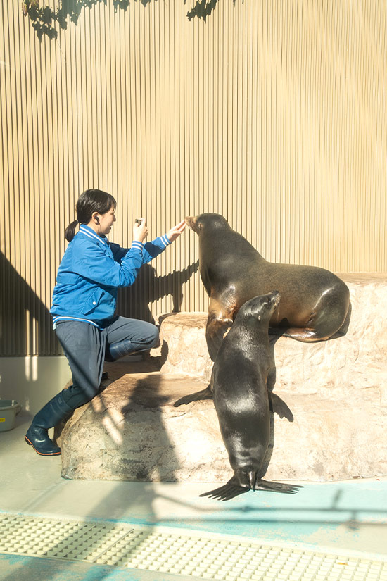 サンシャイン水族館は、地上40mのビルの屋上にある都市型高層水族館として根強い人気を誇るレジャー施設。都会の空を飛ぶように泳ぐペンギンやアシカの水槽が特徴的です。今回は主にアシカの飼育チームにSELPHY CP1500をご活用いただきました。