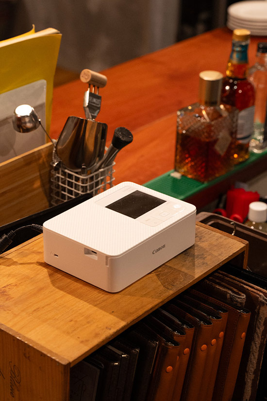 本体は約182.2×57.6×133mm、重量約850gと持ち運びやすいサイズです。店頭やオフィスでの保管もスペースをとりません。また、インクがフィルム状になっているので液・トナーこぼれの心配がなく、イベント搬出入や配置変更、インク交換の際も安心して運用いただけます。