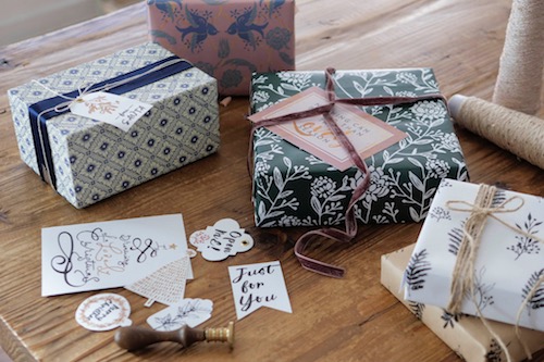 数字デザインを印刷したステッカーとクリスマス柄のタグでデコレーション。