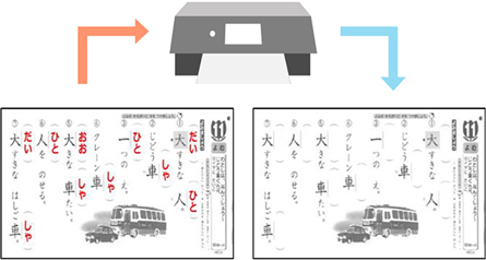 原稿のカラー部分だけを消去しブラック部分だけを残したコピーが可能。問題集や塗り絵などの繰り返し学習などに便利です。