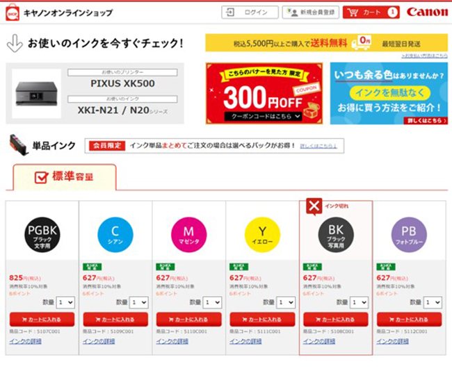 キヤノンオンラインショップやプリンターをご購入いただいた量販店のオンラインショップへ移動できます。キヤノンオンラインで購入される場合は「キヤノンオンラインショップでのご購入、価格を確認したい方はこちら」をクリックしてください。