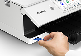 ピクサス本体に搭載したカードスロットにSDカードを差し込んで、液晶モニターの画面を見ながらプリントしたい画像をセレクトすれば、直接プリントできます。