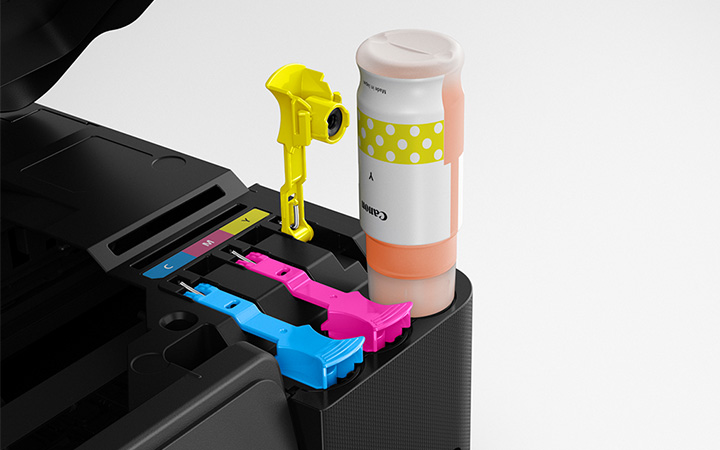 はじめてプリンターをご使用になる際に充填したインクボトルではなく、2回目以降に充填するインクボトルを使用して算出しています。印字可能枚数は、A4カラー文書ISO/IEC 24712を使用し、キヤノン独自の測定方法で算出したものです。