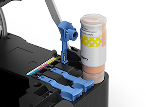 ボトルの差込口の形状を各色ごとに変更。正しい色のタンクにしか差し込めないようにして誤挿入を防ぎます。