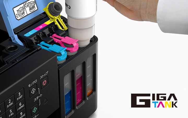 はじめてプリンターをご使用になる際に充填したインクボトルではなく、2回目以降に充填するインクボトルを使用して算出しています。印字可能枚数は、A4カラー文書ISO/IEC 24712を使用し、キヤノン独自の測定方法で算出したものです。