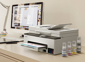 インク交換が少ない特大容量インク、メンテナンスカートリッジのセルフ交換など、印刷停止により貴重なビジネスタイムをロスしないための工夫を行っています。