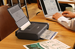 コンパクトサイズながら、1分間にA4普通紙で約5.5枚のカラー出⼒が可能です。