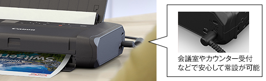 外部での常設プリンターとしても使える「盗難防止ロックスロット」