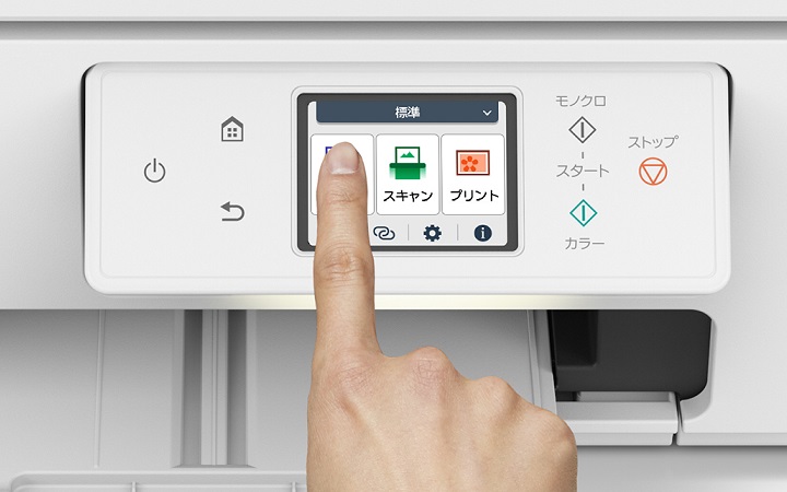 ホーム画面からスタートボタンを押すだけ「1プッシュコピー」モノクロ・カラーそれぞれのボタンを1度押すだけでコピーを実行することができます。
