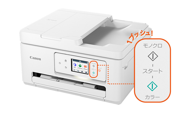 ホーム画面からスタートボタンを押すだけ「1プッシュコピー」モノクロ・カラーそれぞれのボタンを1度押すだけでコピーを実行することができます。