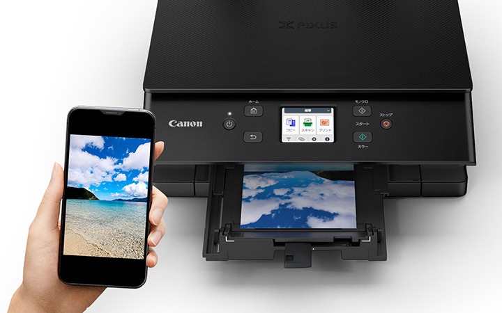 自動で電源オン、プリントまでできる「Wi-Fi 5GHz対応&自動電源オン」スマホやパソコンからプリントを指示すれば、本体の電源が自動的にオンとなります。
