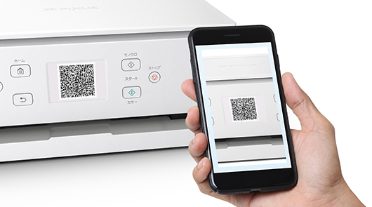 プリンターの液晶画面にダイレクト接続用のQRコードを表示。読み込むだけで、SSIDやパスワードを入力することなく接続設定が完了します。