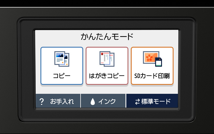 さらに使いやすく「かんたんモード」コピーなどの基本的な機能を素早く使える表示に切り替えが可能です。