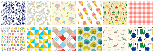 カラフルなパターンを複数ご用意。お好みでプリントすれば、スクラップブックの台紙やブックカバーなどに使えます。パソコン操作なしに、パネルで選んで直接プリントできます。