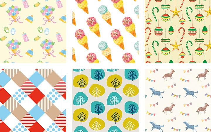 パネル操作で直接プリント「組み込みパターンペーパー」カラフルなパターンを複数ご用意。パソコン操作は必要ありません。