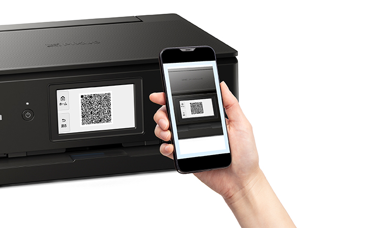 読み込むだけで接続完了!「QRコードダイレクト接続」プリンターの液晶画面に表示されるQRコードをスマホで読み込むだけで、プリンターとの接続設定が完了します。
