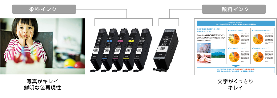 キヤノンの染料インクと純正写真用紙との組み合せにより実現する、写真の美しさと保存性を高めたシステムです。