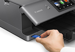 ピクサス本体に搭載したカードスロットにSDカードを差し込んで、液晶モニターの画面を見ながらプリントしたい画像をセレクトすれば、直接プリントできます。