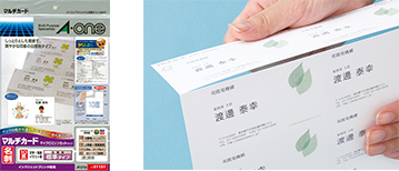 ミシン目部分を山折り谷折りするだけで名刺サイズに切り離せるマイクロミシンカットタイプです。