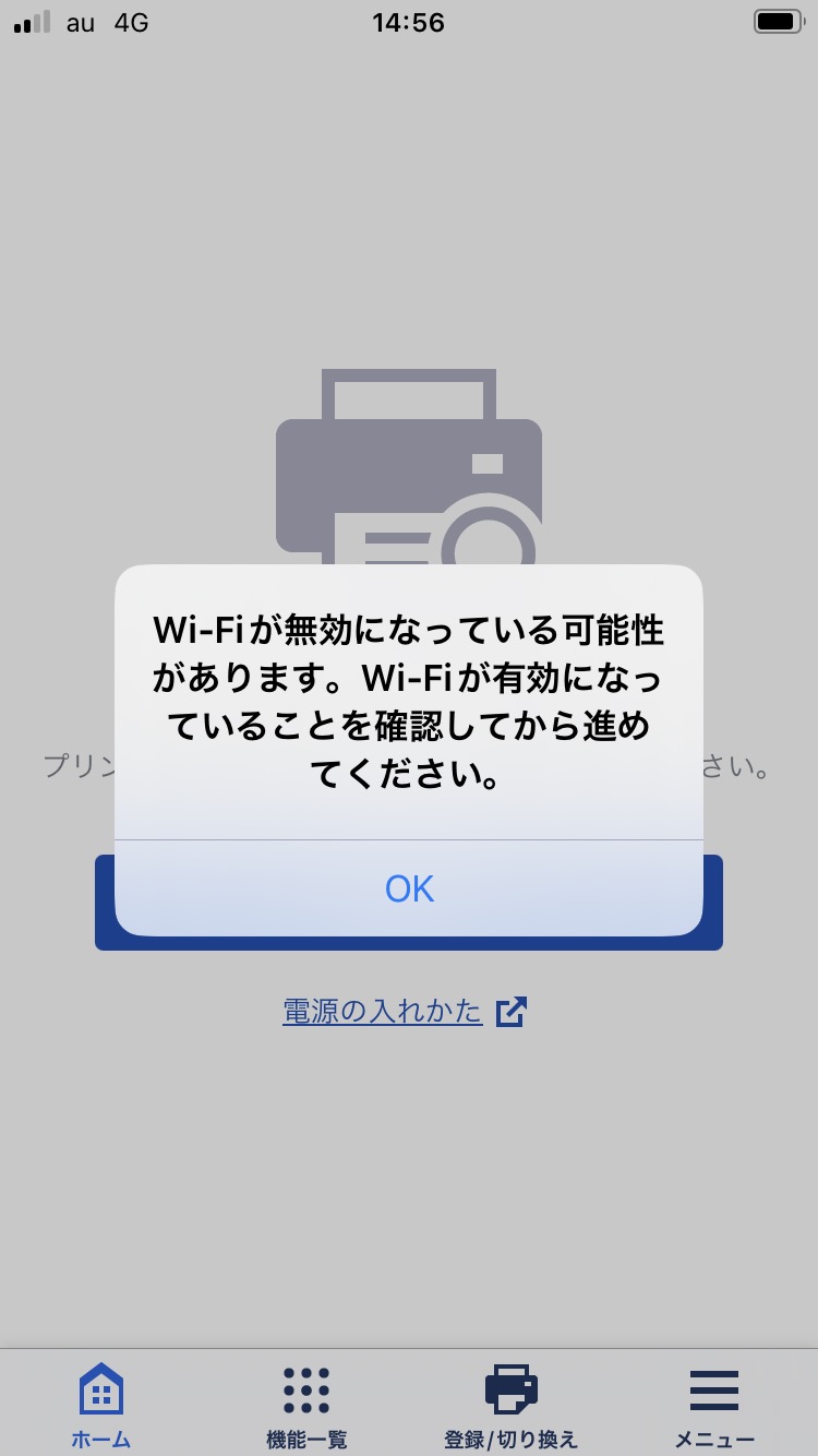 プリンターが見つからない場合は[OK]をタップして指示に従ってプリンター設定を確認してください。