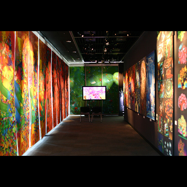 会場の至るところで、色や形、音が生き物のように反応する「ジェモーション」によって構成され、あたかも体内に入ったかのような、または、未知の惑星を旅したかのような錯覚に陥る空間。CGアーティスト、河口洋一郎氏がつくり出す、生命宇宙を濃密に表現した。この世界の中に足を踏み入れた瞬間、来場者の携帯電話を利用したインタラクティブアートが、訪れた人を未知の惑星空間へと誘ってくれる。
