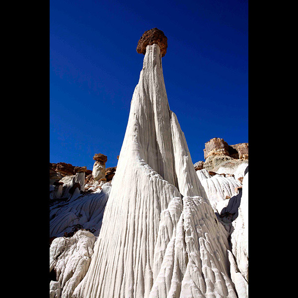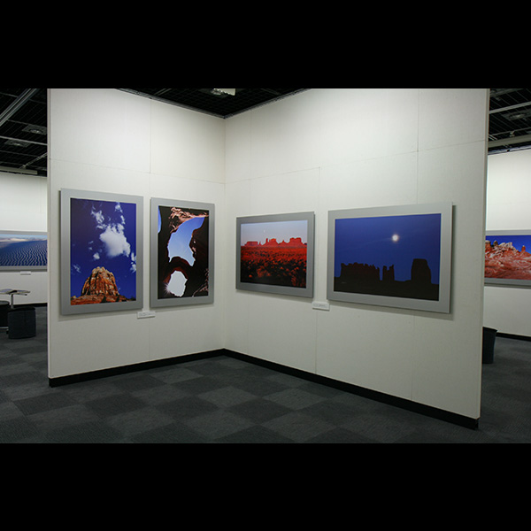 本展では、アメリカ中西部に広がるコロラド高原の荒涼とした景観をとらえた作品を展示。数十億年という長い年月をかけて繰り返される地殻変動によってつくられた、テーブル状の大地や峡谷、天然の岩柱など自然のモニュメント。それを「大地の写人」と称される岩橋氏が、美しく大胆に切り撮った作品が並ぶ。