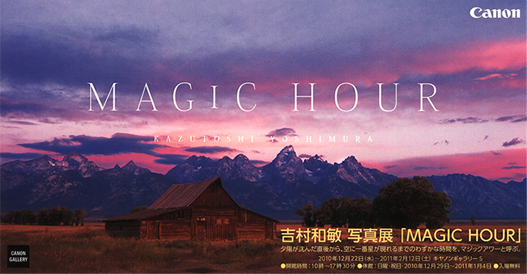 本展は、同タイトルのもと、吉村和敏氏が北米、ヨーロッパ、日本など世界各地で撮影した作品約60点を展示。日没後のわずかな時間、空は淡いピンクやパープルに彩られ、光が均一に回ることによって地上にあるすべての風景が存在感を増す。「MAGIC HOUR」がつくり出す静かで穏やかな風景は、見る者の心を落ち着かせ、安らぎの世界へと誘ってくれる。