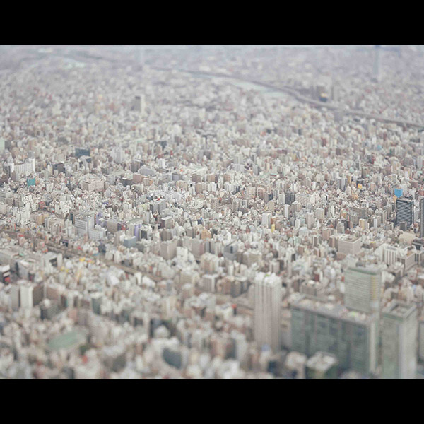 展望台から東京の街を俯瞰して見ていると、どこまでも果てしなく続く密集した建造物の景色に圧倒され、まるで模型の世界のような仮想空間にいる錯覚に落ち入る。