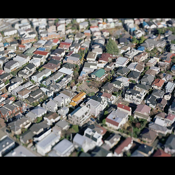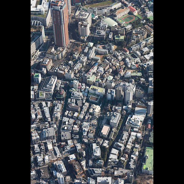 本城氏が建造物の乱立する東京の街を俯瞰して空撮した作品約50点を展示します。新しい高層ビルや工事中の建物などをジオラマ写真のように撮影した作品は、経済の鈍化や人口減少に逆らい変わり続ける東京の街が、日常に住む場所でありながら仮想空間かのような世界だということを想起させます。