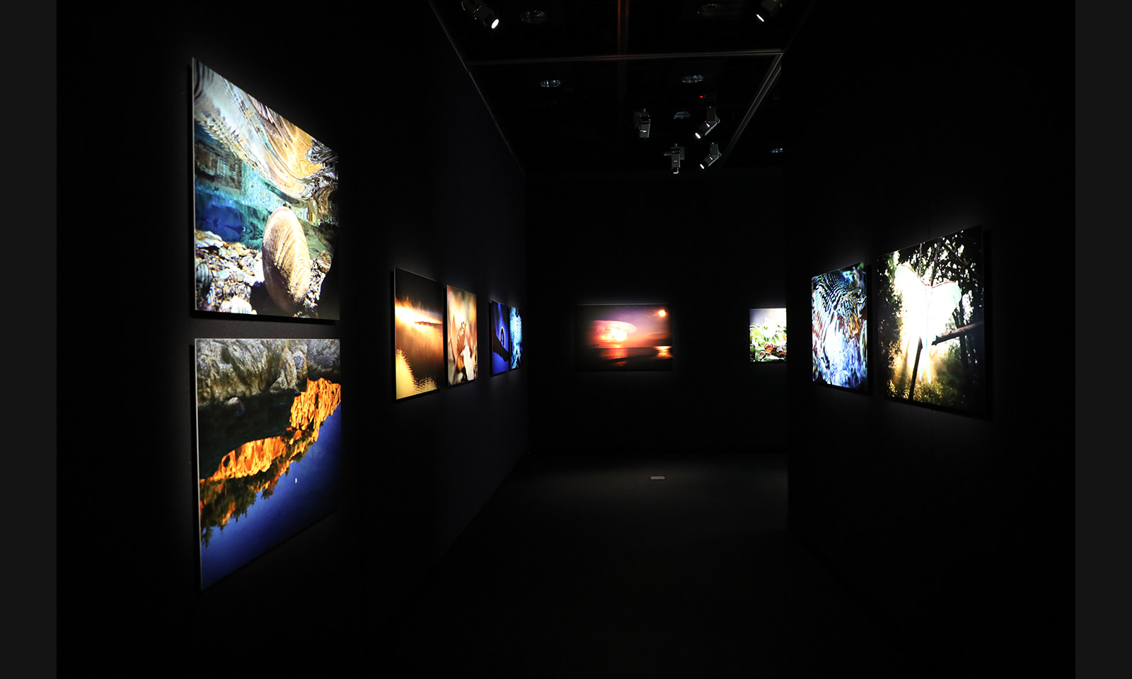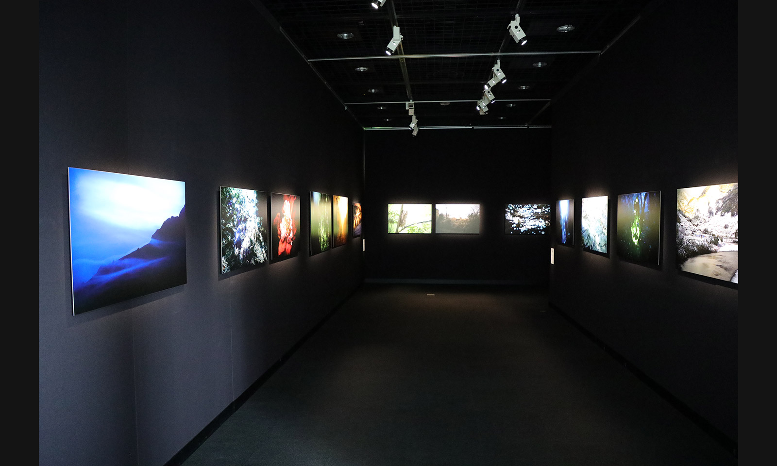 毎日のように海にレンズを向けていたあのころを思い出すと、なつかしさとともに数々の海のシーンが脳裏にうかぶ。そんな時代が15年ほど続いただろうか。ある日私は海に背を向け、遥かな山脈を目指して川をさかのぼることになる。海に流れ込む淡水の姿に興味を持ちはじめたのである。そして、無限に変貌する水に感動し、清冽な青い水に心をうばわれるようになっていった。美しい水を探せば、行き着く先はいつも決まって原生林であった。そこには途方もなく巨大な「森羅万象」の世界があり、私を待ちかまえていたのである。私は自然に対する畏敬の念を抱きながら森の中をさまよいはじめた。2ミリメートルの小さな水滴の中にも宇宙があり、何かの音色のようなトラツグミの声にも心をうばわれた。闇が迫ると生物発光が見え、闇夜の森が祝祭のように輝くことも知った。森は湿度をおび、すべてが神々しく、不思議な安らぎに包まれていた。