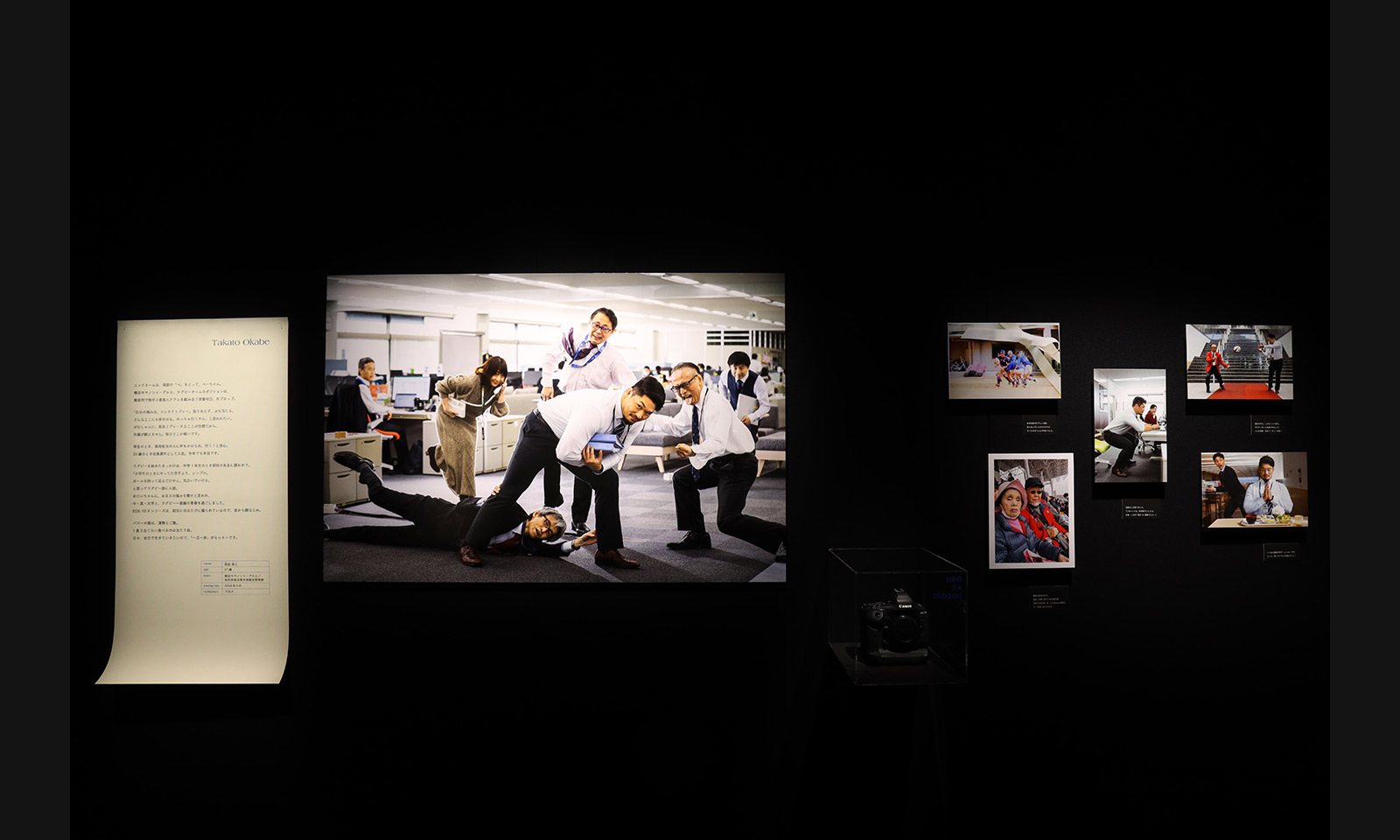 品川では主に、全国さまざまな地域や部門で働く計15名のキヤノン社員を、氏ならではの視点で捉えた作品を展示します。被写体となった社員それぞれの思い出のカメラやレンズを使用して氏が撮影した写真と、生い立ちや会社生活をまとめた文章を交えた作品からは、素顔や人となりが生き生きと伝わります。また氏がユーモアたっぷりに捉えた家族写真の新作も展示するほか、氏の演出によるフォトスポットで記念撮影を楽しめます。