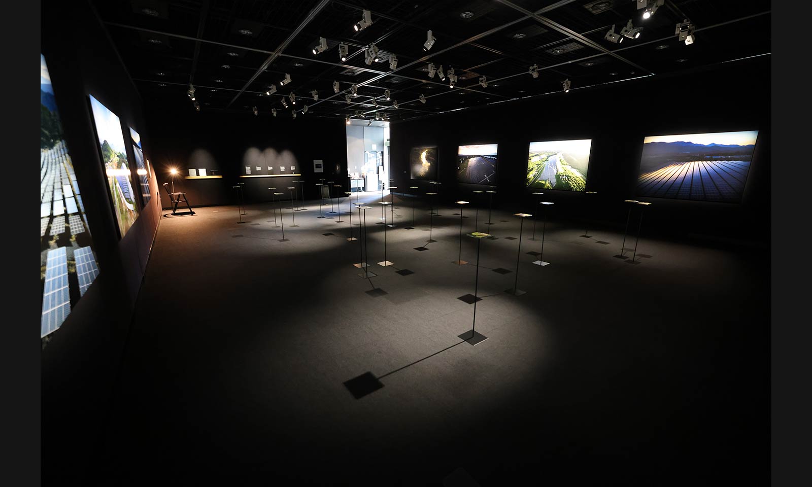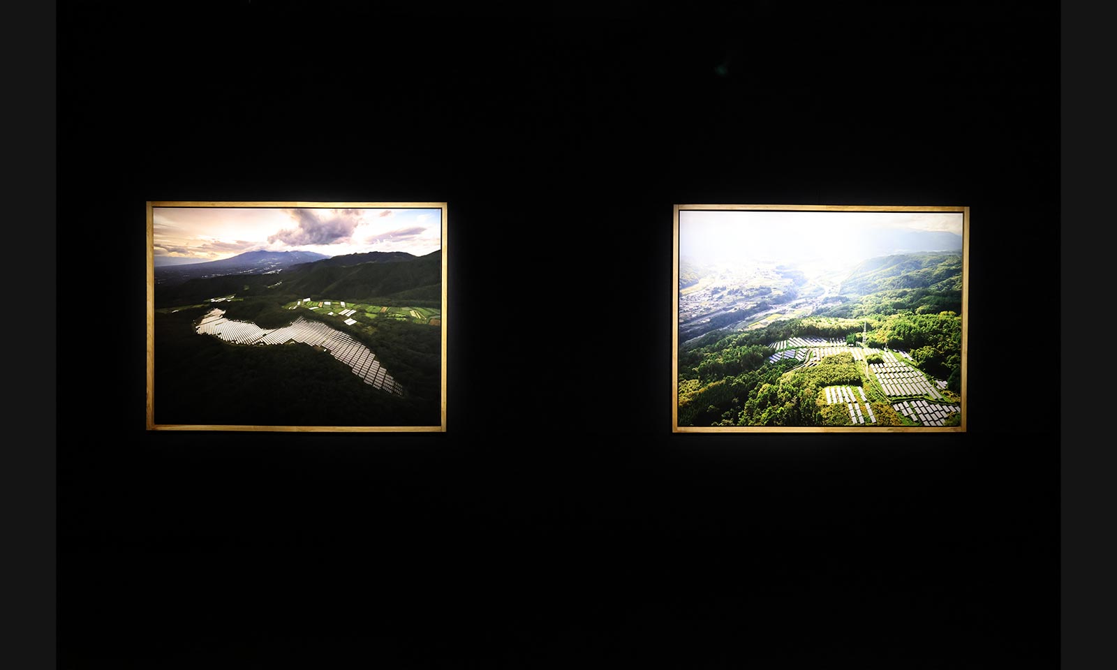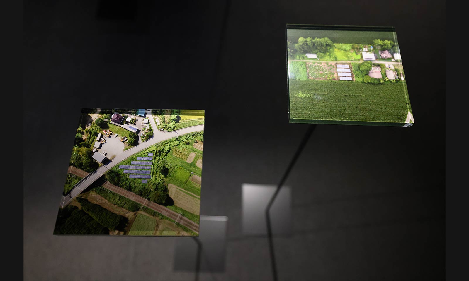 本展では、北杜市に太陽光パネルが設置されている景観を写した作品9点と、太陽光パネルを真上から捉えた作品35点を、地理座標をイメージした配置で展示します。自身が写真を撮影する意味や作品を発信することに伴う責任感を抱えながら研究を続けていることをイメージしたラボ空間、そして氏が写した風景を通して、今この地球で起こっていることや写真になにができるのかを鑑賞者に語りかけます。