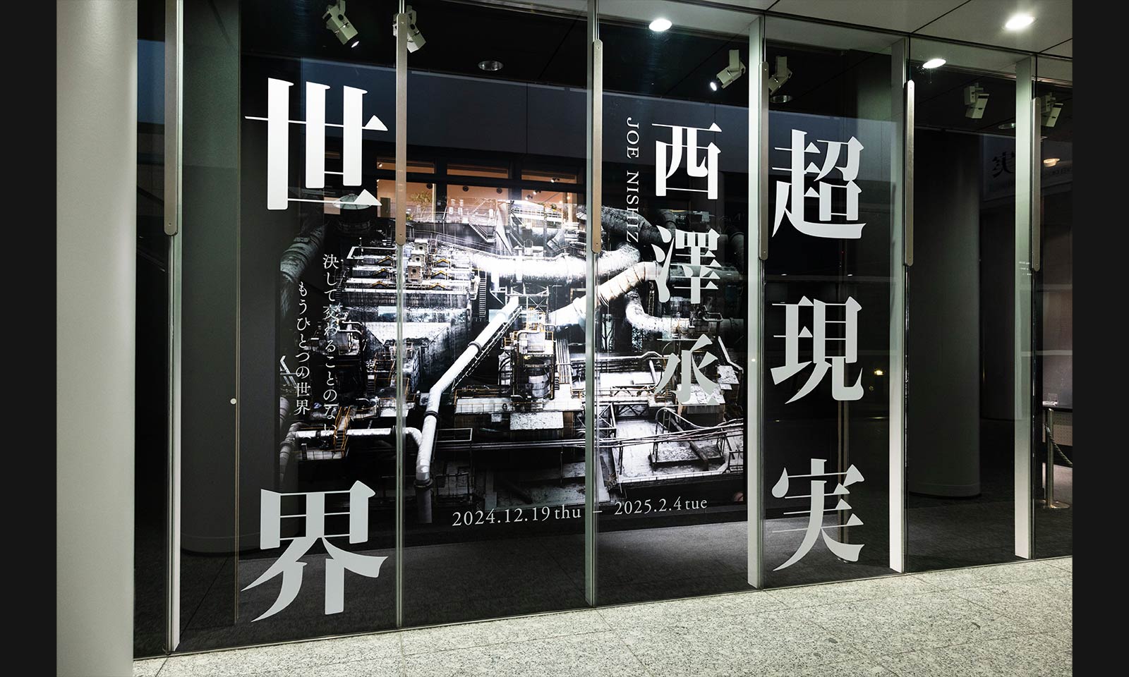 本展は、写真家 西澤丞氏による写真展です。写真展「超現実世界 決して交わることのない、もうひとつの世界」ではインフラ、科学、工業、エネルギーなど私たちの暮らしを支えている様々な「立入禁止」区域で撮影された作品を展示いたします。「写真を通じて日本の現場を応援したい」というコンセプトのもと、日本の工業技術、研究開発を西澤氏ならではの現場目線で撮影された作品からは非日常の世界が広がります。会場ではキャプションは敢えて付けず、展示作品をそのまま味わったり、あるいは西澤氏による解説文を片手に「もうひとつの世界」をお楽しみください。